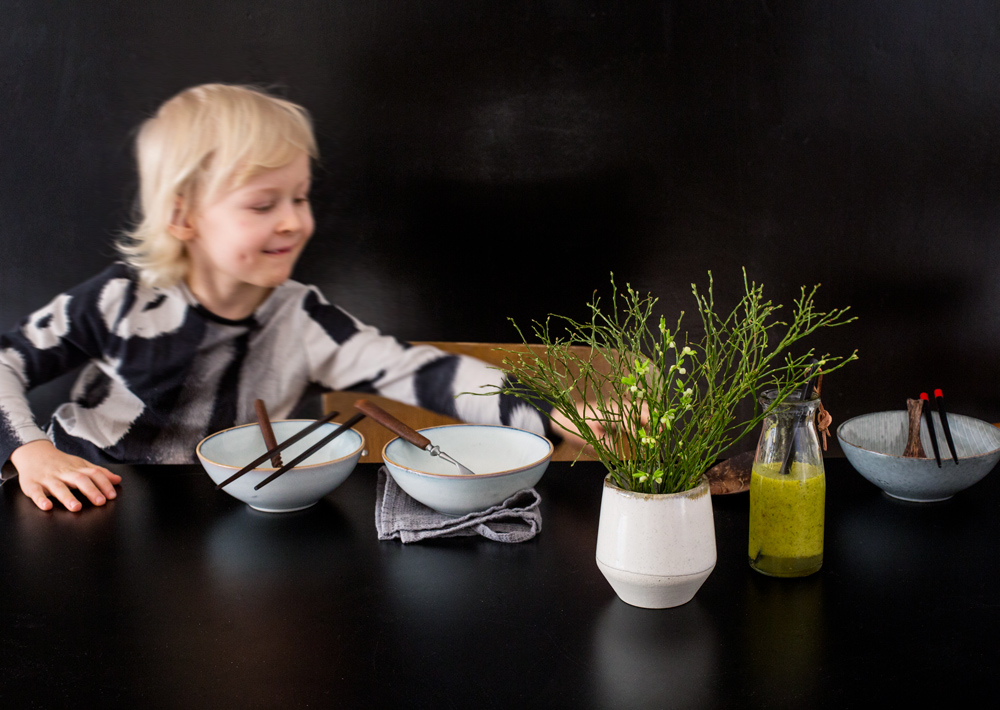 tarjoiluun kevään vihreitä versoja ja salaatteja