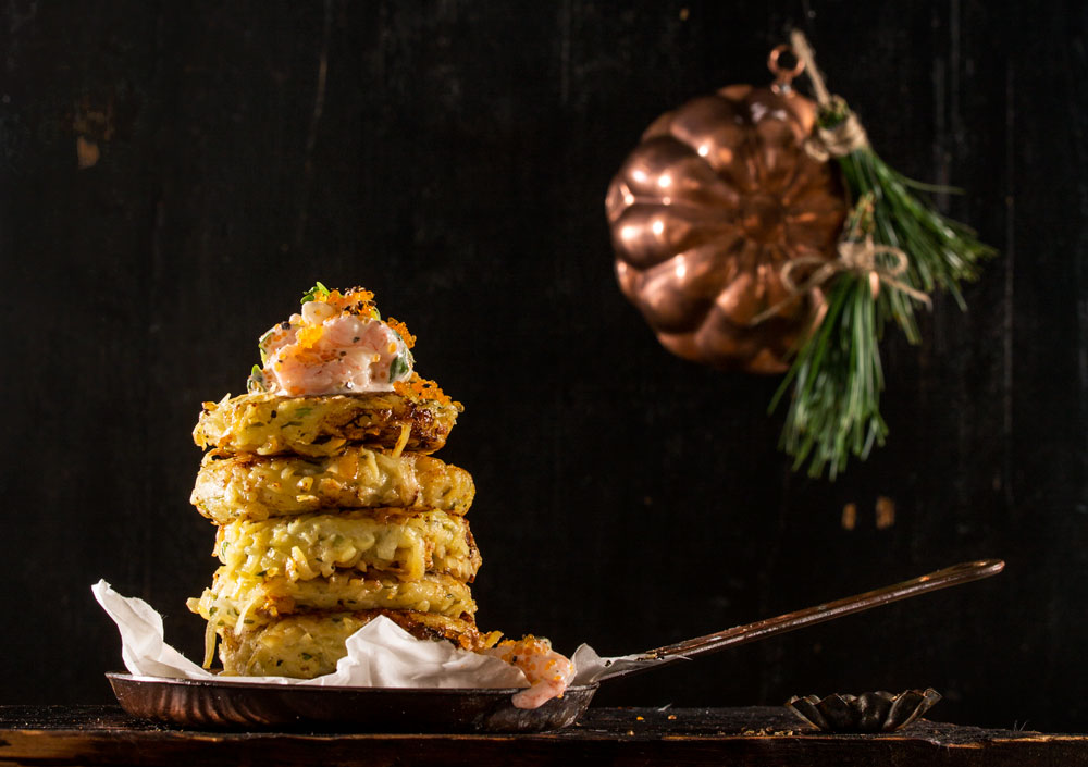 Valmista maukkaat perunaröstit ja tarjoile ne katkarapujen ja mädin kanssa. Tämä herkku sopii joulupäivien pöytään ja ottaa vastaa myös uuden vuoden mukavan juhlavasti.