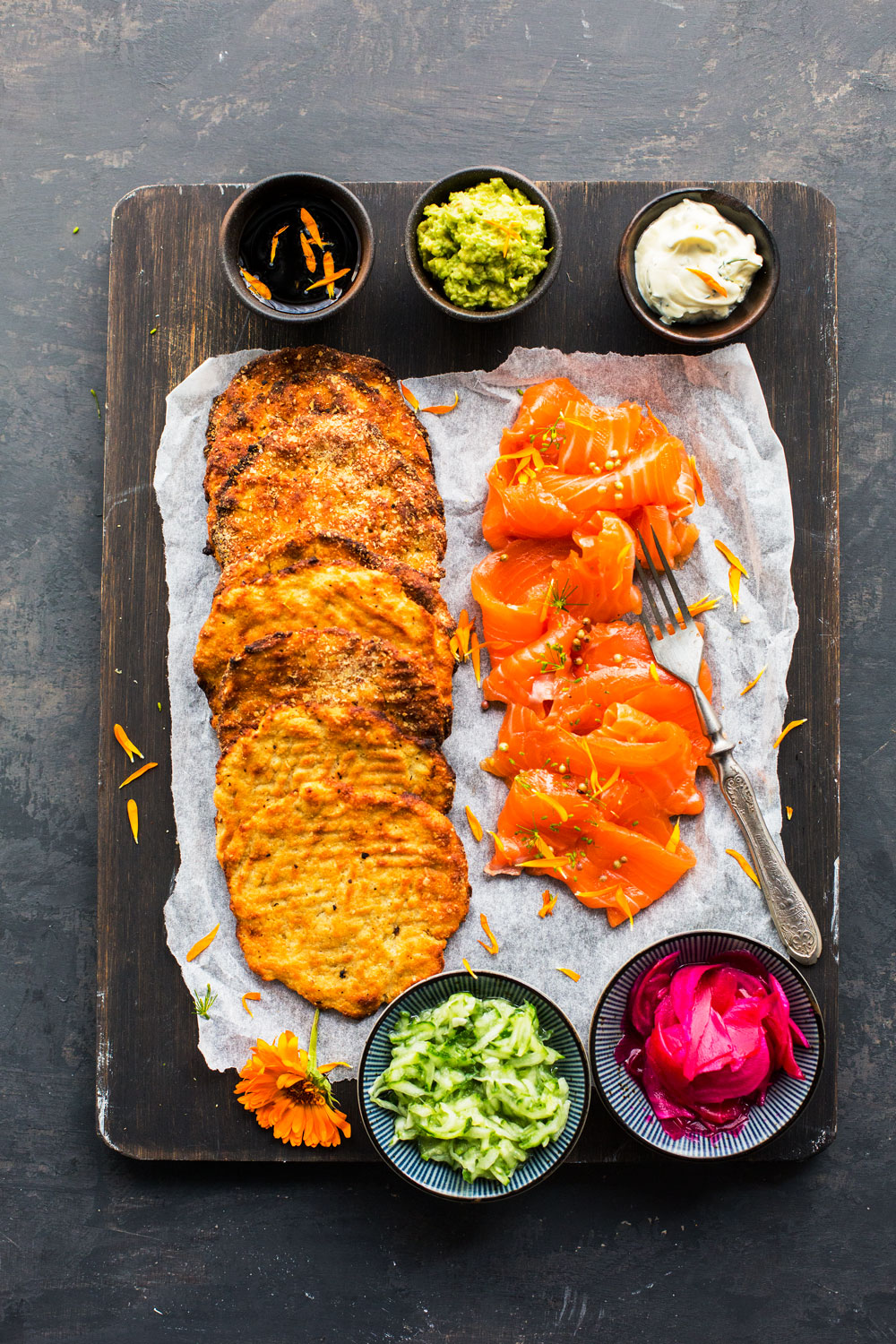 Leivo iki-ihanat perunarieskat, ne valmistuvat kädenkäänteessä. Rieskat maistuvat graavilohen ja lisäkkeiden kanssa.