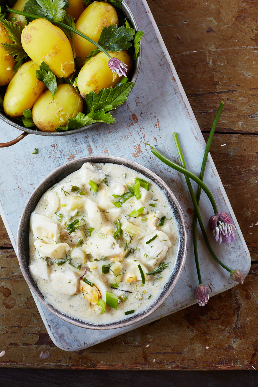 6. Tarjoa kastike uuden sadon perunoitten kanssa.